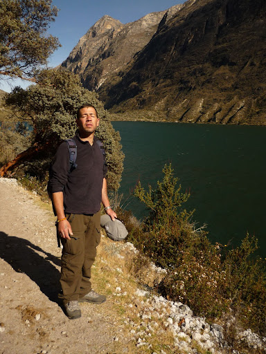 paysages splendides de patchworks verts marrons et rougeoyants avec le levé de soleil, devant nous les hauts pics enneigés de L'alpamayo et du si connu ( je pense que mes potes projectionnistes pourrons facilement le reconnaitre)
